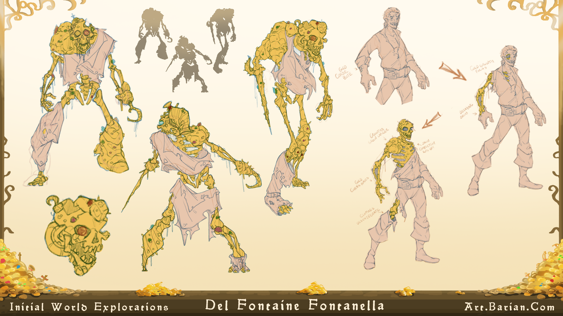 The Del Fontaine Collection was a work done throughout a 3 month semester class in my Junior Year of College. The work started with an idea, world building and explorations, then generating a character from the world to face, or solve the problem.