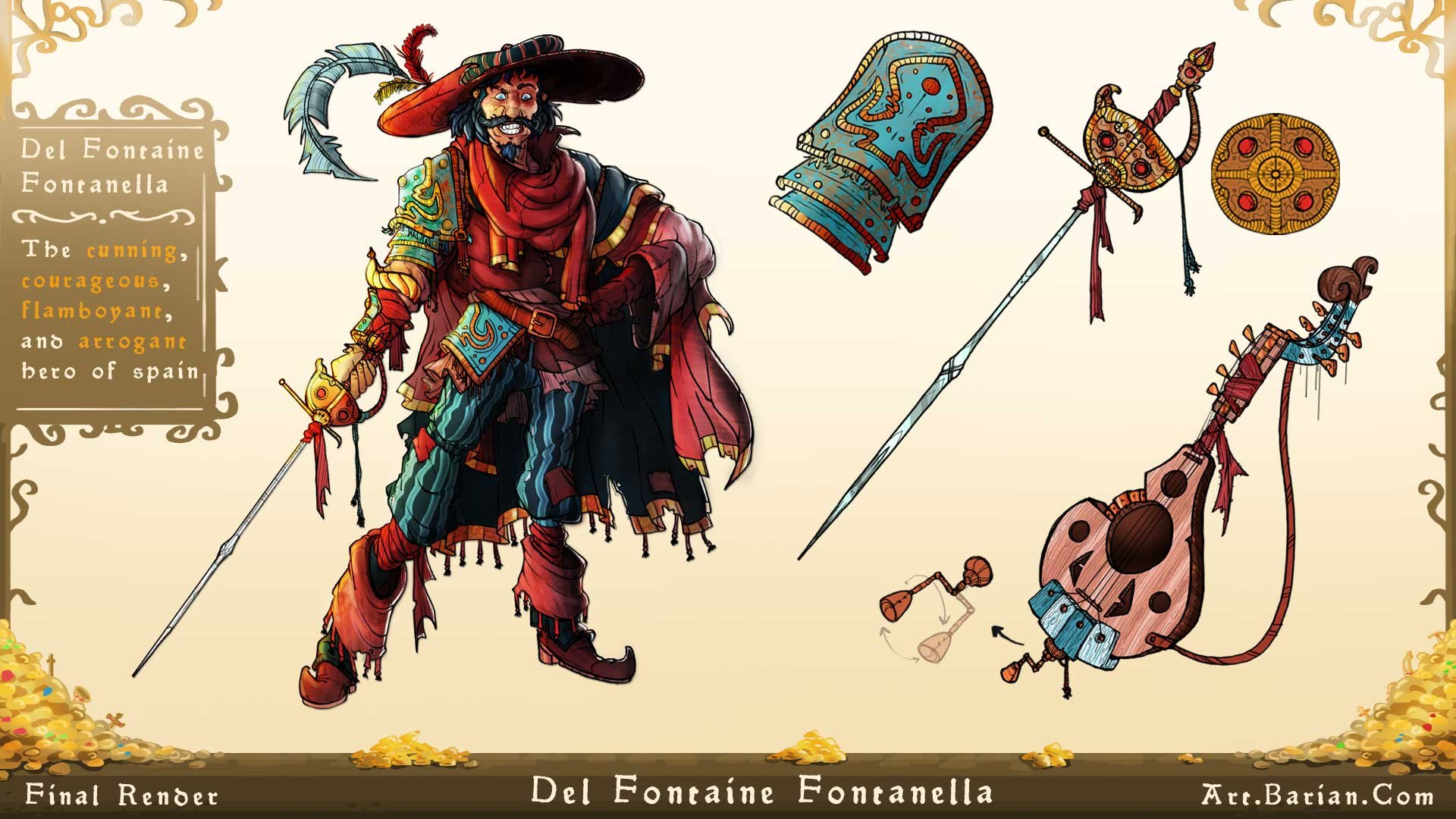 In this world, Del Fontaine Fontanella is a vigilante hero, working for the people against the mad Governor Malbec, who has been corrupted by the returned legend of Midas, a golden curse has taken over Spain and our hero Fontaine, must put a stop to the Governors plan before all is turned to gold.
